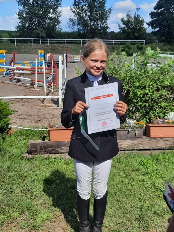Dnes Verča úspěšně složila ZZVJ. Drezurní úlohu zajela s Ghalibem a parkur odskákala s Krakenem.